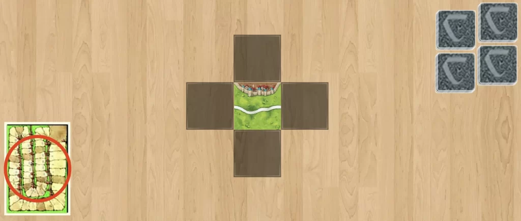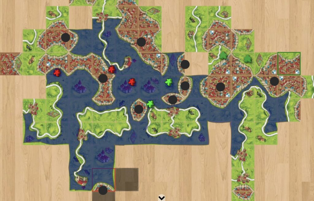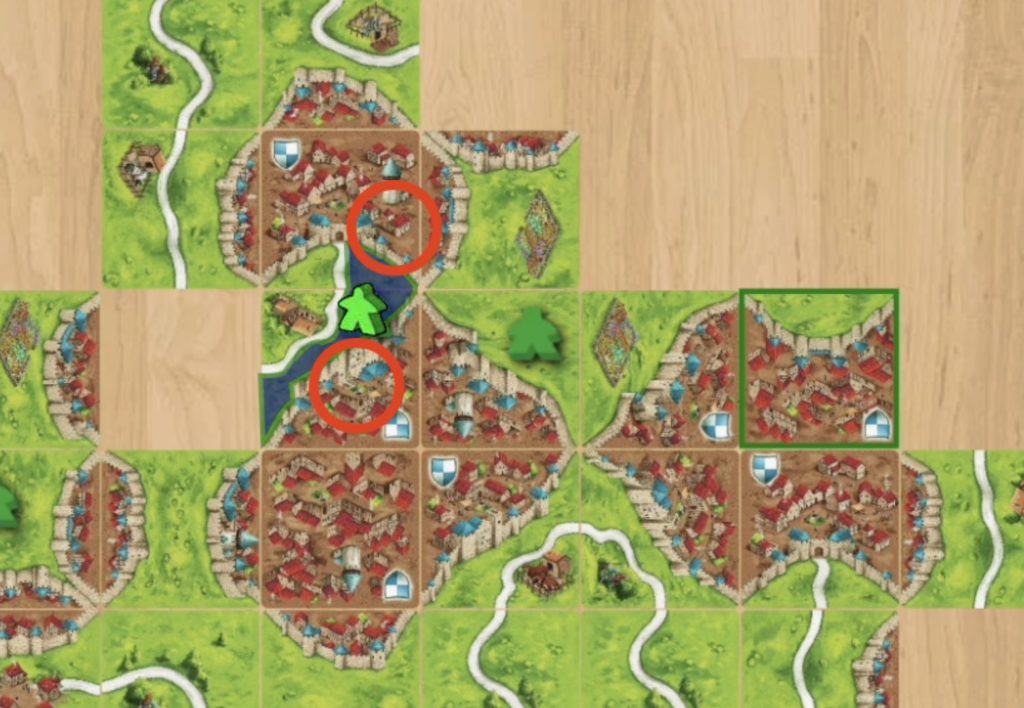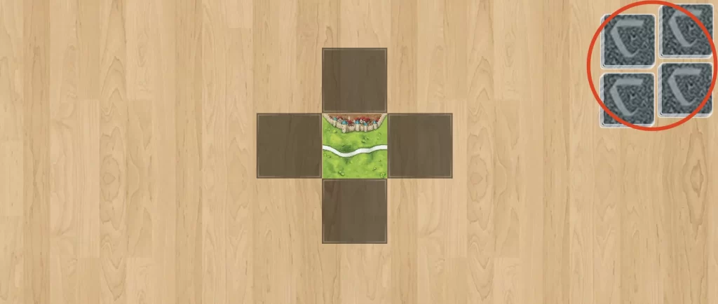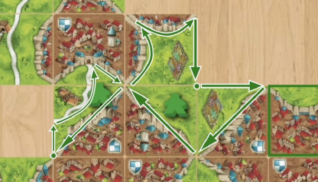 手番で引いたタイルは、できるだけ「道路」や「都市」が完成する場所に置きましょう。 そして、そこにコマを置いて、すぐに得点計算をしてコマを回収する。この「置いて、完成させて、戻す」というサイクルを早く回すのが、最も基本で確実な動きです。