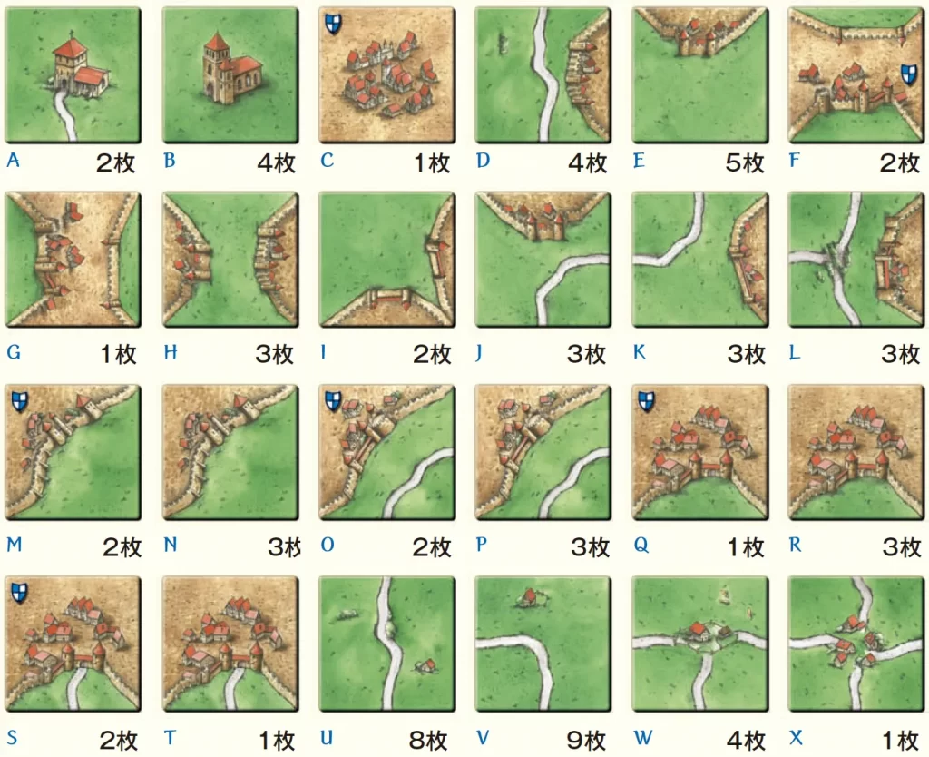 - 接続ルール:道は道と、都市は都市と、草原は草原と、絵柄が矛盾しないようにつなげる必要があります。