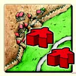 農夫が寝ている草原ごとに、その草原に接している「完成した都市」1つにつき3ポイントを獲得します。1つの草原に複数の農夫がいる場合は、都市や道路の得点計算と同じく「多数決」で所有者を決めます。