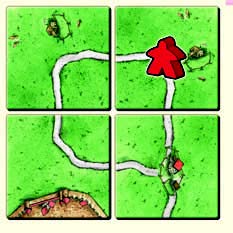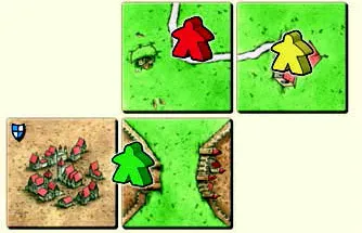 タイルを置いたことで「道路」「都市」「修道院」が完成した場合、直ちに得点計算を行います。 得点を得た後、その場所にいたコマは持ち主の手元に戻ります。