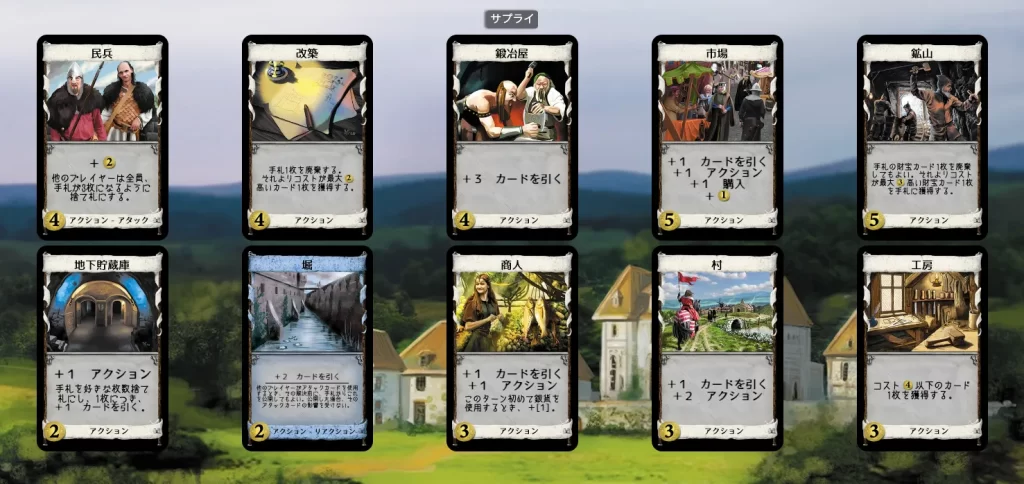 今回ゲームで使用する「王国カード」を決めます。